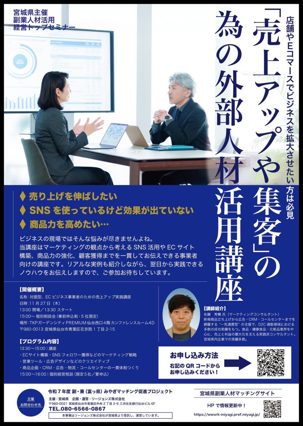 【11/27開催】副業人材活用 経営トップセミナー│売上アップや集客」の為の外部人材活用講座