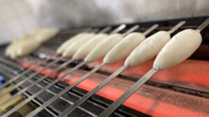 百貨店内の製造所に石臼を備え原料から蒲鉾づくりをしているのは全国百貨店で唯一です。弊社社員が製造技術を身に付け、心を込めてつくる藤崎オリジナル蒲鉾は、厳選した素材を使用し、手作りならではのふっくらとした厚さと食感を生み出します。