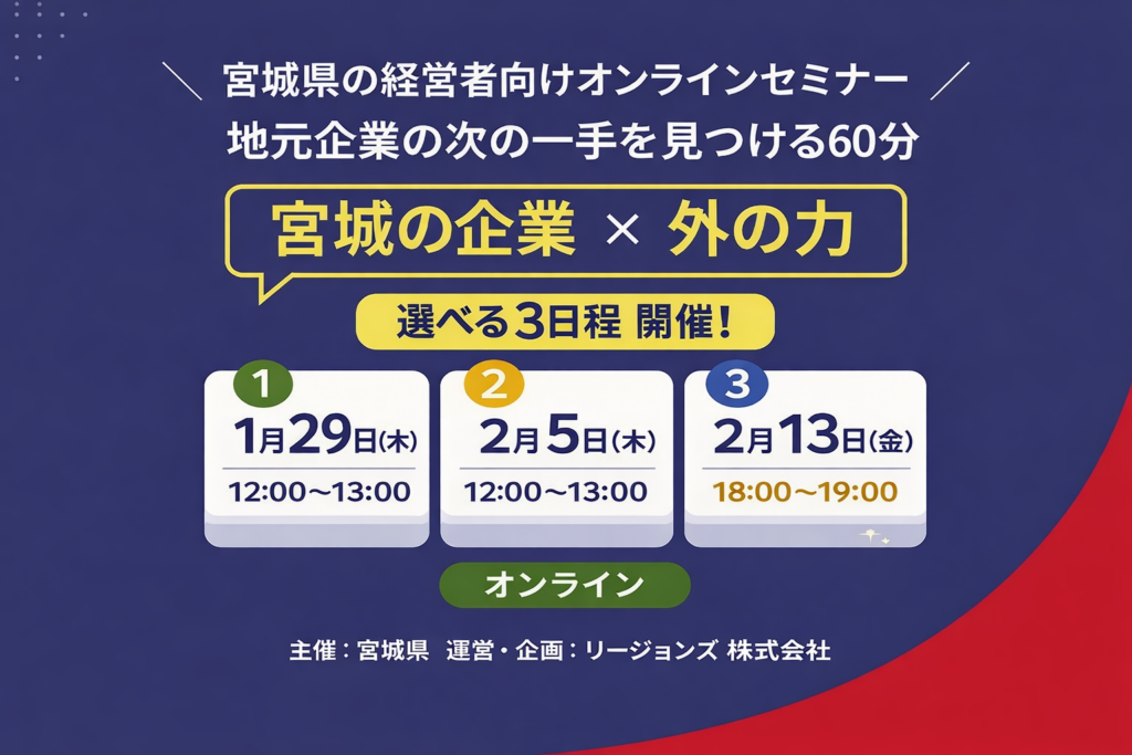 地元企業の次の一手を見つける60分「宮城の企業 × 外の力」~県内企業のリアルな課題に、副業人材という選択肢を!~