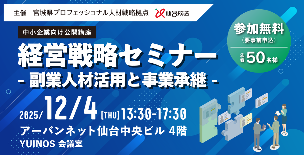 - 主催:宮城県プロフェッショナル人材戦略拠点/仙台放送